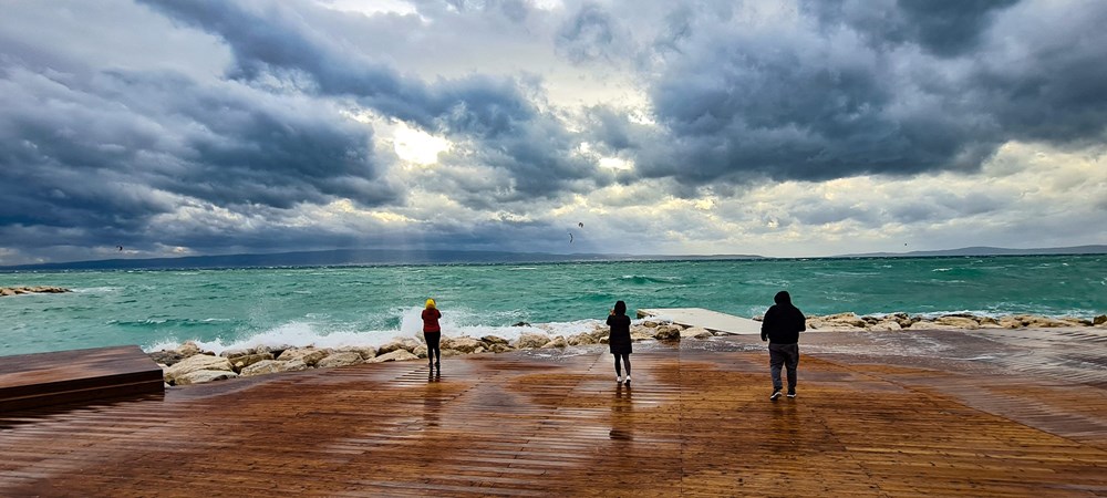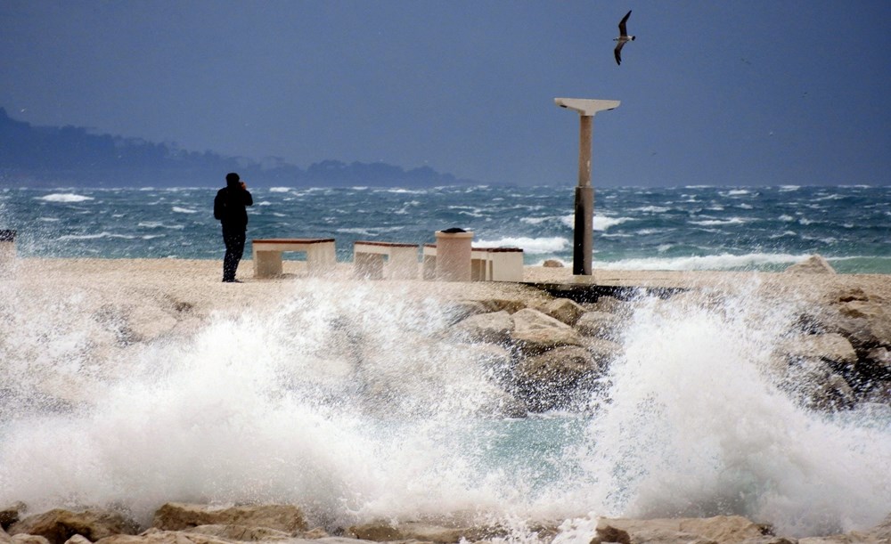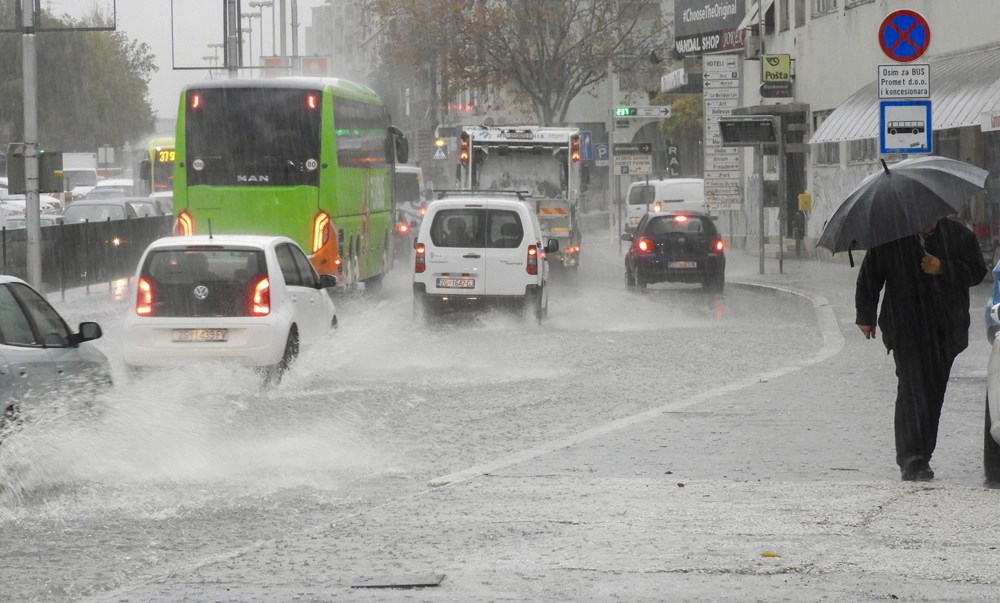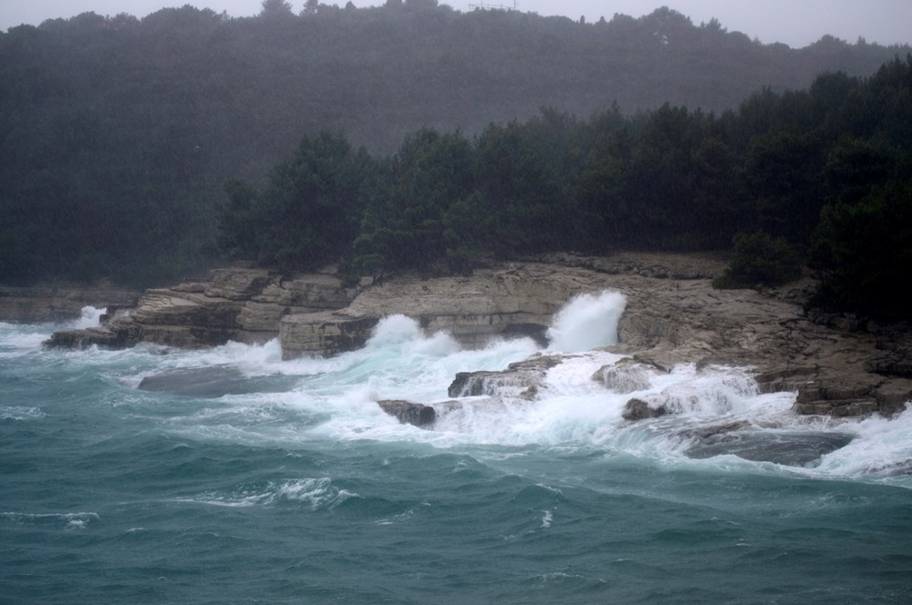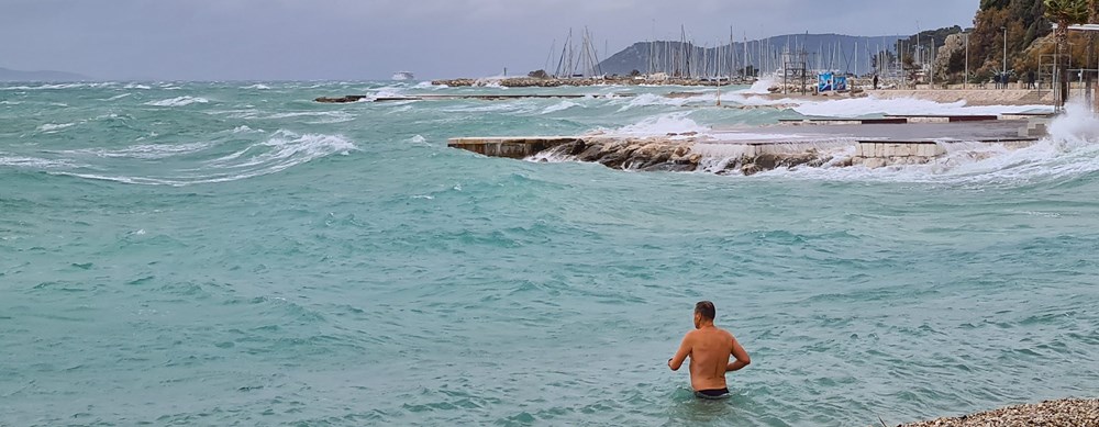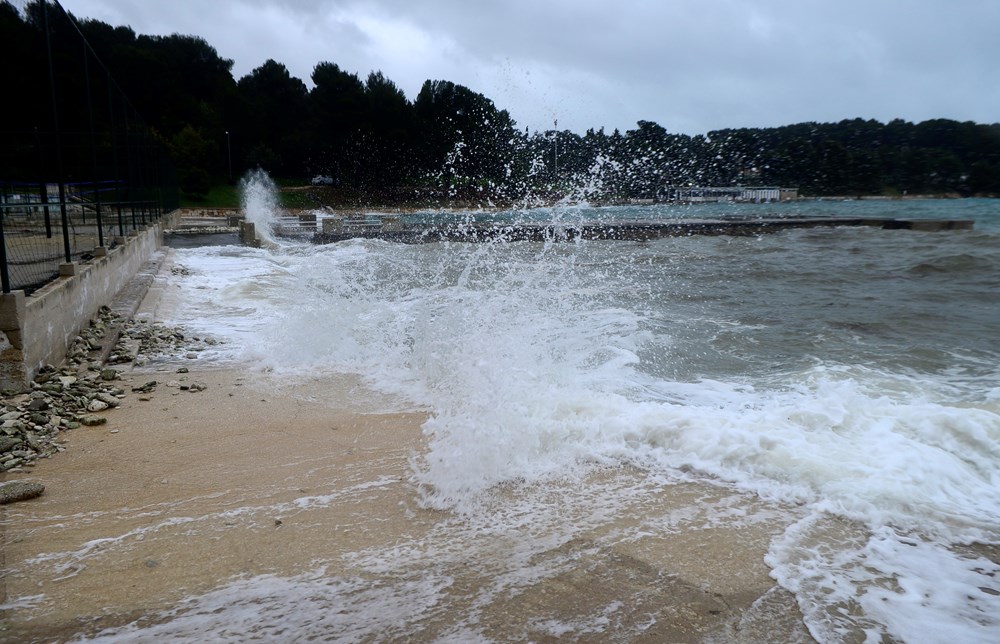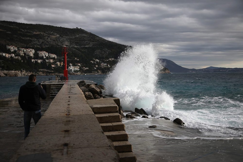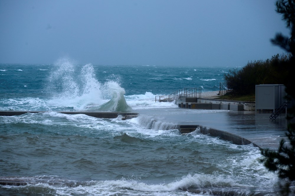 Za cijeli Jadran danas je DHMZ oglasio crveni meteoalarm - obilna kiša i olujno jugo već zadaju probleme, pa su tako u Dalmaciji visoki valovi poplavili obale brojnih gradova te su u prekidu trajektne i brodske linije.