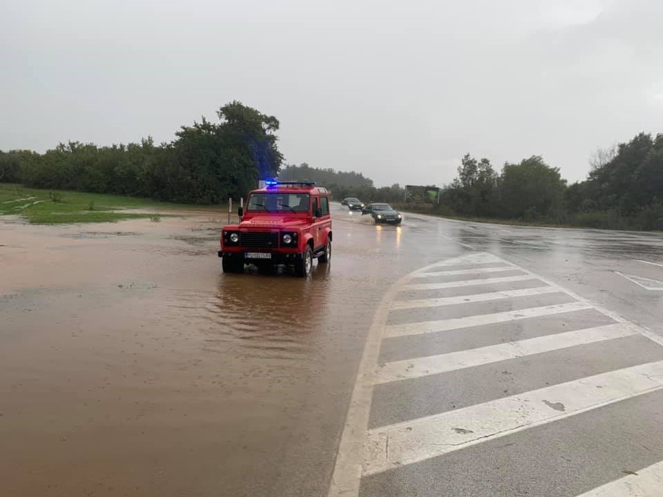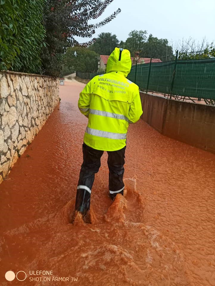 Rovinjski vatrogasci su do 18 sati imali čak 32 intervencije. Ispumpavali su poplavljene kuće, dvorišta podrume.... Bilo je i više intervencija na prometnicama koje su bile potpuno pod vodom.