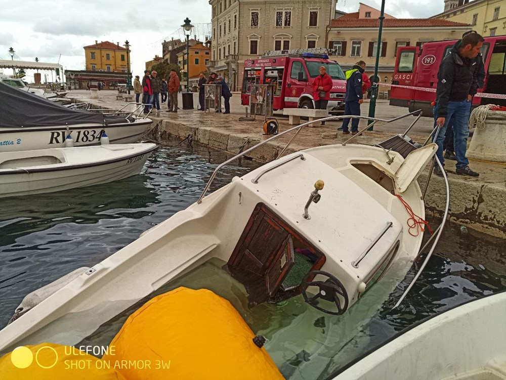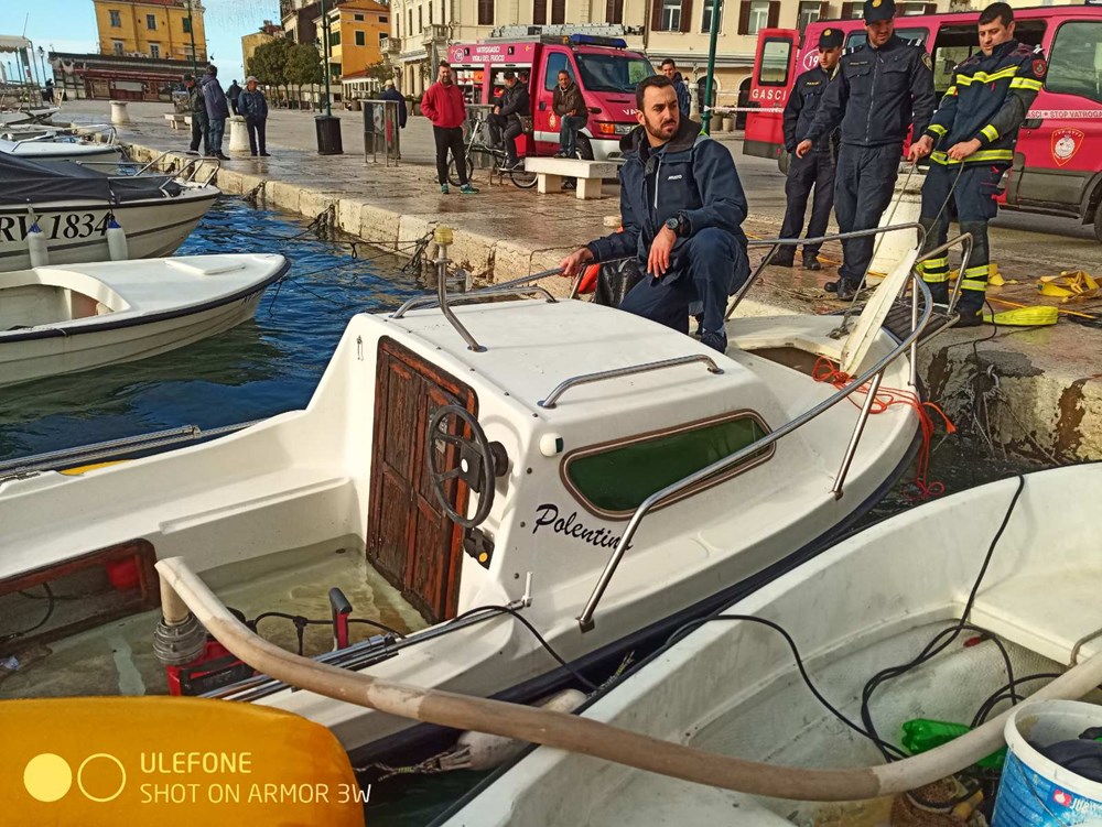 Rovinjski vatrogasci su, uz ostale interventne službe, ima pune ruke posla u rovinjskoj luci gdje je nedjeljno nevrijeme napravilo poveću štetu.