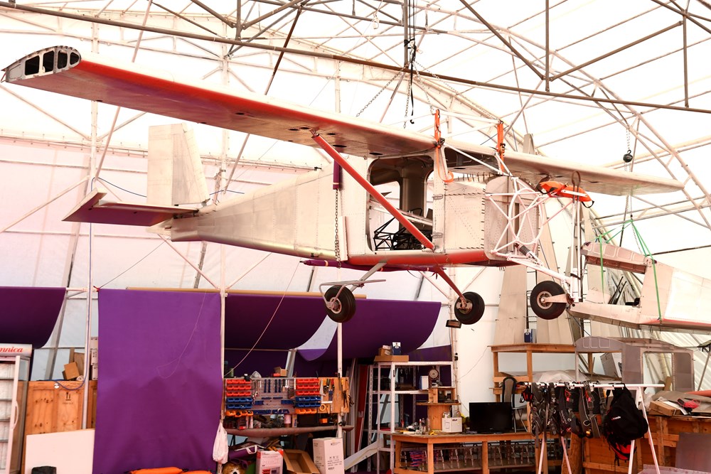 Na ulazu u šator dočekuje nas predsjednik društva Cumulus Goran Ratkajec, inače i izbornih hrvatske padobranske reprezentacije. Čim smo ušli u prostor sugestivno podiže pogled. Gore, zategnut lancima, visi avion! Sličan je općepoznatoj Cessni. Nedovršen je, napravljena je konstrukcija, a čeka se motor. Komplet dijelova došao je iz Kanade. Avion se sklapa kao lego kockice, precizno, podsjeća na puzzle gdje se svaka sa svakom savršeno poklapa. Dijelovi se povezuju zakovicama, a za avion koji trenutno rade, prvi u seriji koja bi mogla uslijediti ako im se poslože ambicije i mogućnosti, bilo je potrebno njih oko 20 tisuća!