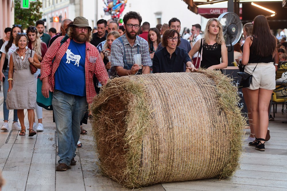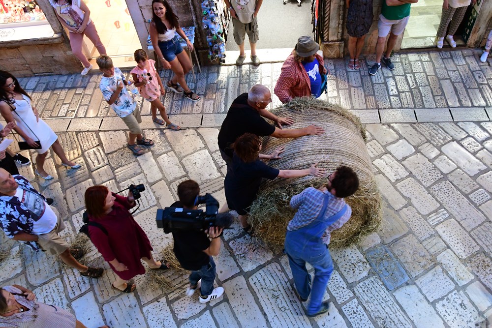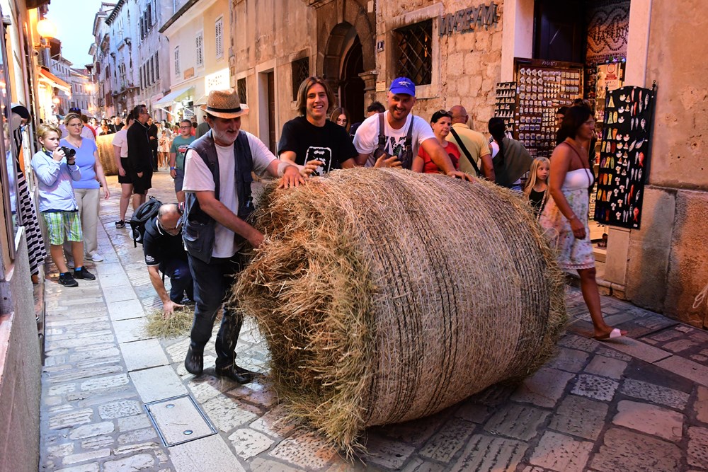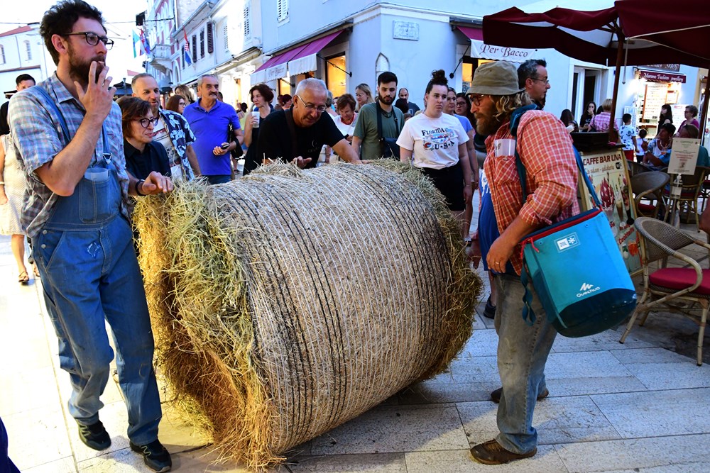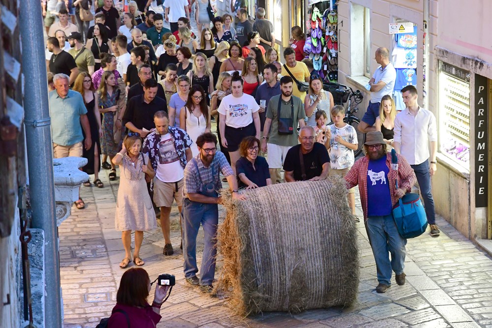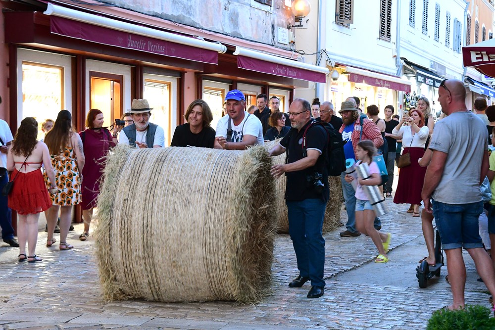 Zanimljiv performans mogao se vidjeti sinoć u Poreču gdje se ulicama po centru - guralo velike bale sijena.