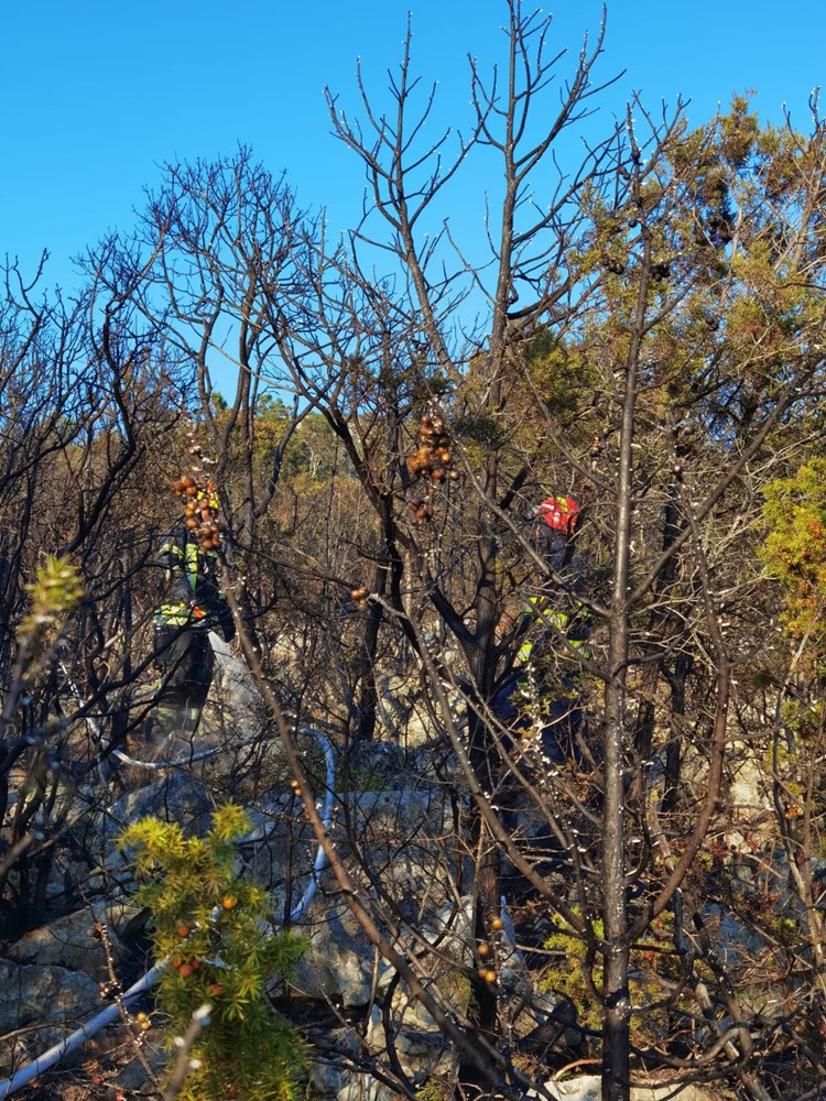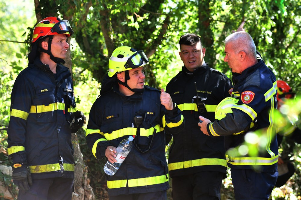 Kod mjesta Pinezići na području općina Marčana gori na više mjesta. Vatra se proširila i opožarila i područja oko Divšića, Šarića. Uz jaku buru s vatrom otvorenog prostora bore se 15 pulskih vatrogasaca iz JVP Pula sa pet vozila i ekipe iz DVD Pula, Marčana, Medulin i Vodnjan.