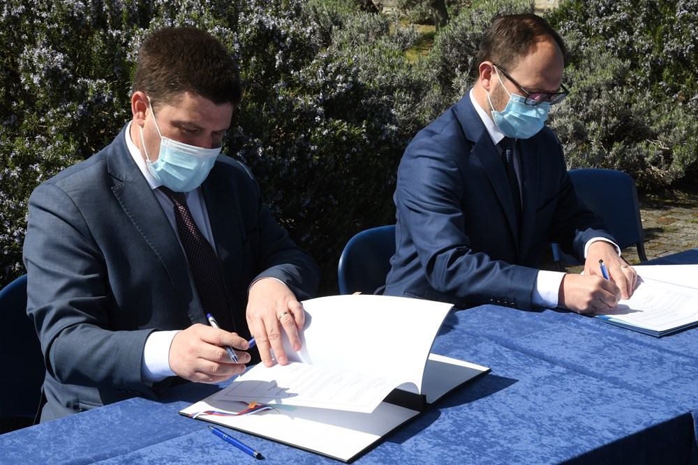 Hrvatski ministar mora, prometa i infrastrukture Oleg Butković i slovenski ministar infrastrukture Jernej Vrtovac potpisali su jutros ugovor o gradnji novog mosta preko rijeke Dragonje na graničnom prelazu Kaštel vrijedan 10 milijuna kuna.