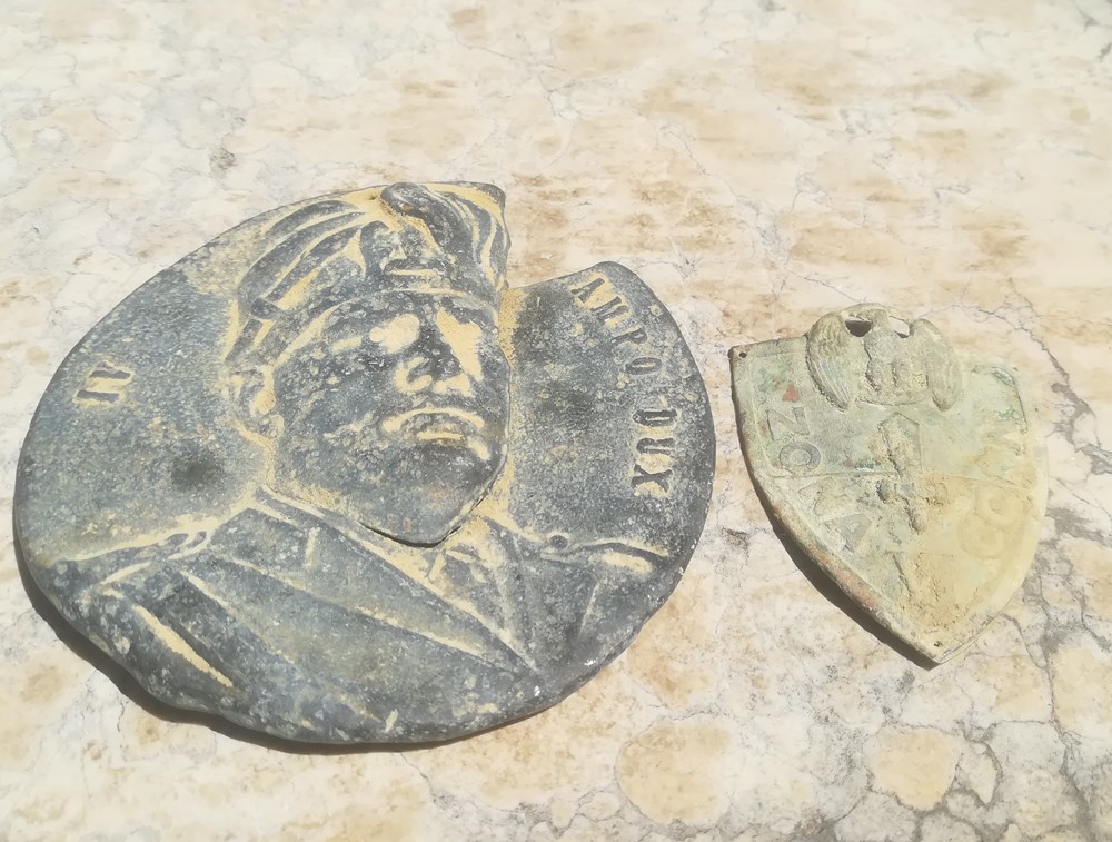 Kažem ponovo, jer je istovjetnu pronašla na istom mjestu i prije pet godina, međutim, ovoga je puta pronašla i jednu drukčiju. Na toj se ističe poprsje talijanskog fašističkog diktatora Benita Musolinija u odjelu i s prepoznatljivom vojnom kapom. Na od gline blatnjavoj i okrugloj pločici stoji natpis: IV (C)ampo dux. O čemu se radi?