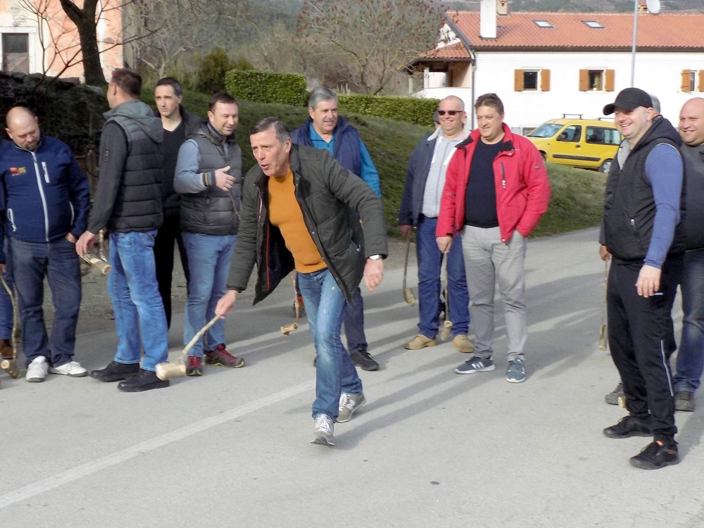 Muška se družina jučer već tradicionalno častila pošalicama. Obiteljskim ili drugim nadimcima prozivalo se idućeg igrača; Furt, Furlan, Paparot, ošter, organ reda, "oni ki mi vozi les", Jure orehi, puh ili škujatolo. Zadnji igrač u svakom krugu izvikuje "pagarošto". Na cilju kod gostione Most zbrajaju se negativni bodovi, a prikupljeni novci potroše za zajedničku večeru. Kao što maškare tjeraju zle duhove zime tako i sudionici igre na ruh sve što je bilo loše ostavljaju u zimi i okreću se novom godišnjem dobu. (Gordana ČALIĆ ŠVERKO)