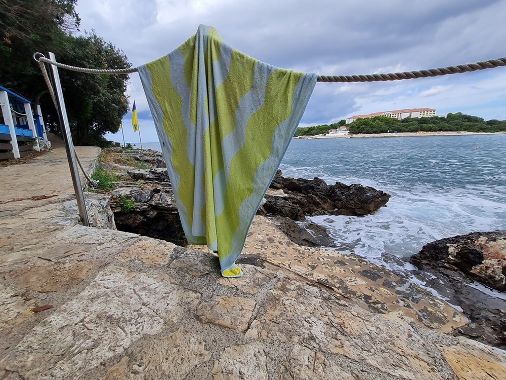 Na svoje dnevno polsatno plivanje volim otići rano dok nema ljudi na moru, osim poneko u moru s navikama ili potrebama sličnim mojima tako da su fotografije nastale negdje u to doba, najkasnije do 8 sati.
