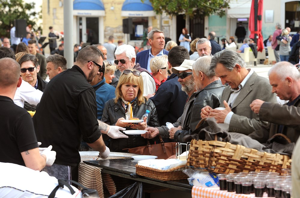Uskrsnu jutro u Poreču inače je osvanulo malko tmurno, ali sunce je granulo upravo kad se na gradskom Trgu slobode počeo odbijati središnji dio programa "Uskrsnog slavlja", četverodnevne manifestacije koju je organizirala porečka Turistička zajednica. Porečki gradonačelnik Loris Peršurić podijelio je Porečanima, ali i turistima koji su za uskrsno jutro odabrali šetnju gradom, 300 obroka uskrsne marende odnosno šuga od kalamari s palentom, koje je pripremljeno u novigradskom restoranu Pelagius, a podijeljeno je i 300 pisanica. Vedrom jazz i popularnom glazbom atmosferu na porečkom trgu je diskretno ali vrlo dražesno uljepšavao Big band iz Pule, a posjetitelji su mogli razgledati i 17 štandova uskrsnog sajma tradicionalnih proizvoda s ponudom vina, rakije, meda, voća i voćnih prerađevina, maslinovogm, bučinog i konopljinog ulja, lavande, prirodne kozmetike i suvenira.