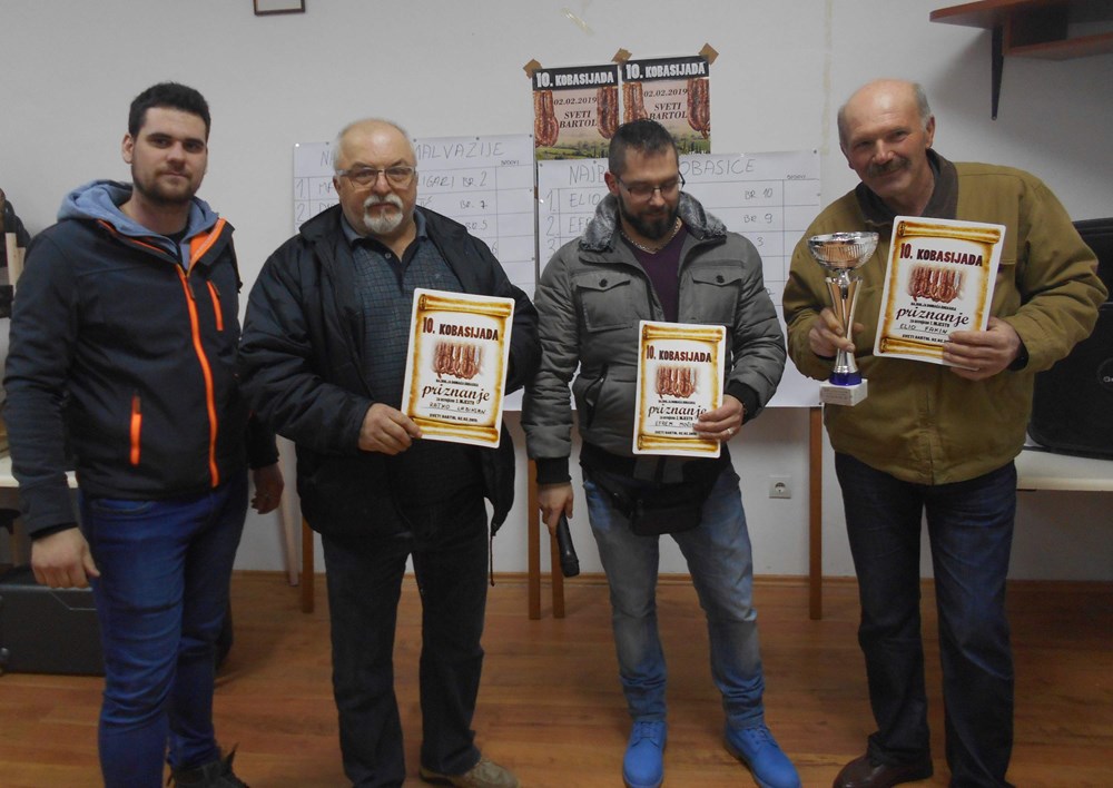Pobjednički pehar za najbolju domaću istarsku kobasicu na jubilarnoj desetoj Kobasijadi u Svetom Bartolu kod Motovuna osvojio je Elio Fakin, dok je najboljom domaćom malvazijom proglašena ona koju je napravio Marčelo Kaligari. Drugo i treće mjesto za domaće kobasice osvojili su Efrem Močibob i Ratko Labinjan, a za malvaziju Davor Beletić i Valter Kotiga.