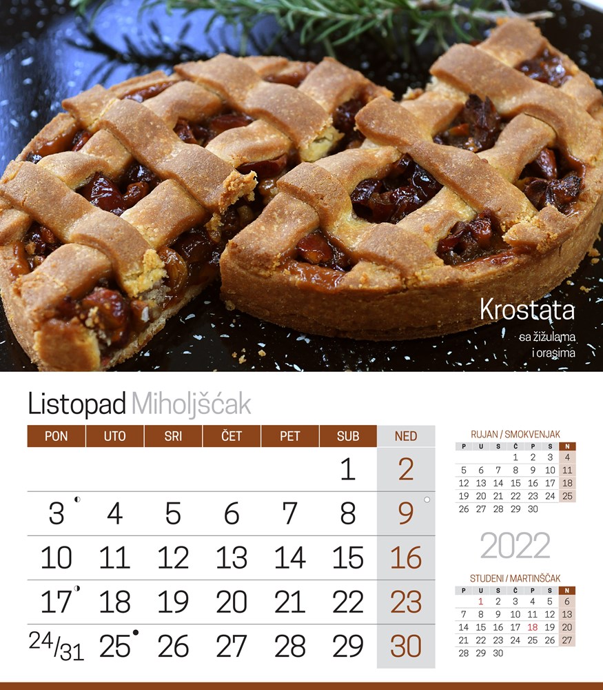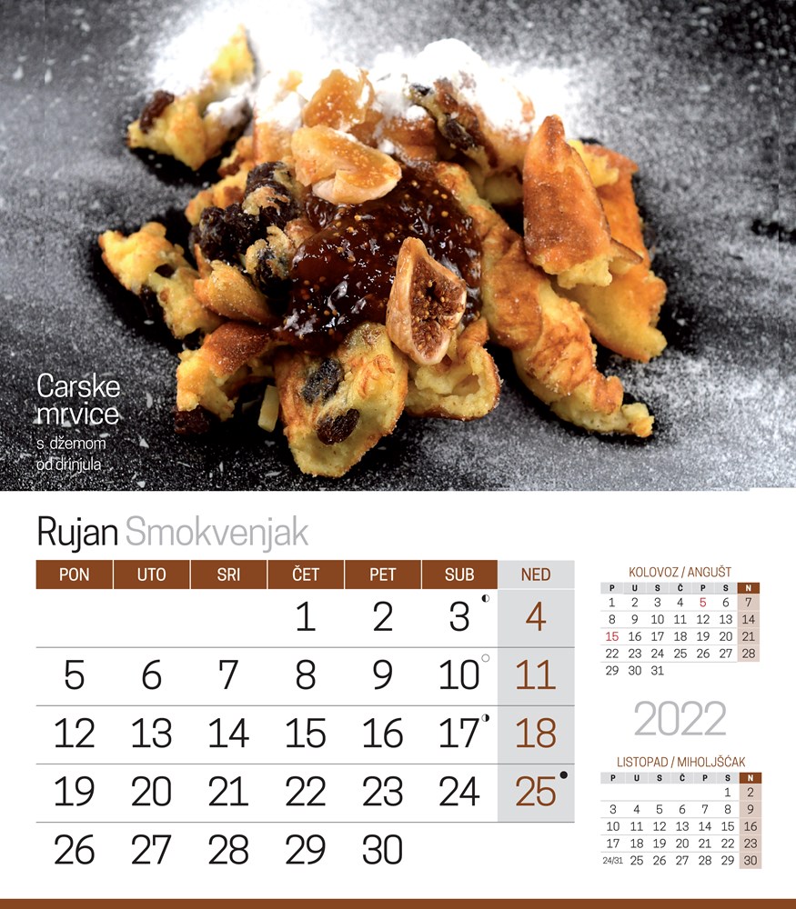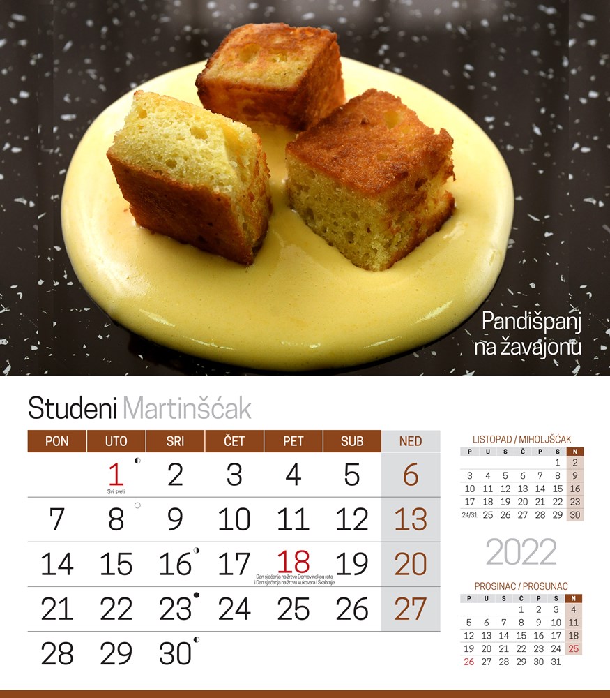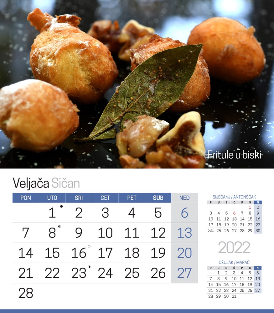 Na stranicama kalendara nalaze se neke manje poznate slastice, ali i one kojima je suvremeni način pripreme dao novi pečat. Krenimo ih predstaviti redom.