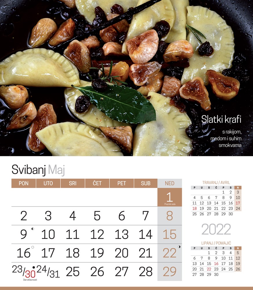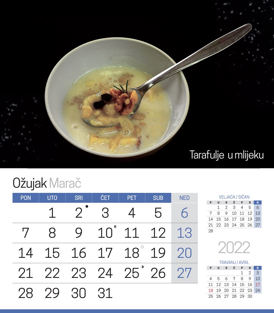 Ovaj ćete kalendar, zasigurno, sačuvati i nakon što okrenete njegov zadnji list, izrezati koji recept i ubaciti u "svoju staru bilježnicu od recepata" koju ljubomorno čuvate u nekom škafetinu, bez obzira na svu tehnologiju koja vas okružuje.