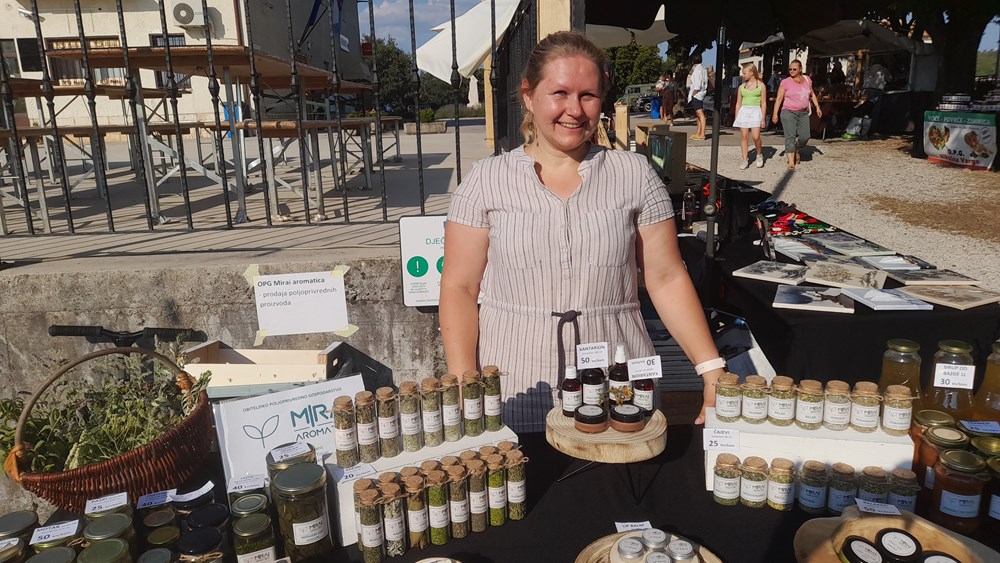 - Plodovi prirode nepošteno su zapostavljeni, naročito posljednjih nekoliko generacija, kaže Martina Štifanić iz OPG Mirai aromatica koja je na svom štandu nudila zanimljive proizvode - samoniklo bilje s područja Istre. Primjerice ukiseljeni medvjeđi luk kojeg bere u vlažnoj šumi iznad Drage, ali tu je i sušeni medvjeđi luk, začinska sol, pesto te pupoljci. Zatim nudi primorski motar, brojne vrste voćnog pekmeza, popularni sok od bazge, a zamijetili smo i tušt.