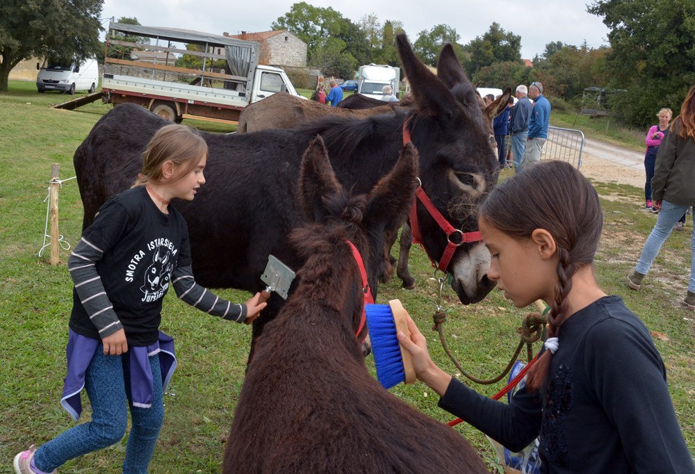 Na smotri magaraca bilo je velikih i malih, baš kao i njihovih vlasnika. "Ovo je grožđica, a Čupka joj je mama" rekla nam je simpatična krezuba 7-godišnja Noemi iz Valture, dok je s prijateljicom četkala malu tovaricu Grožđicu.