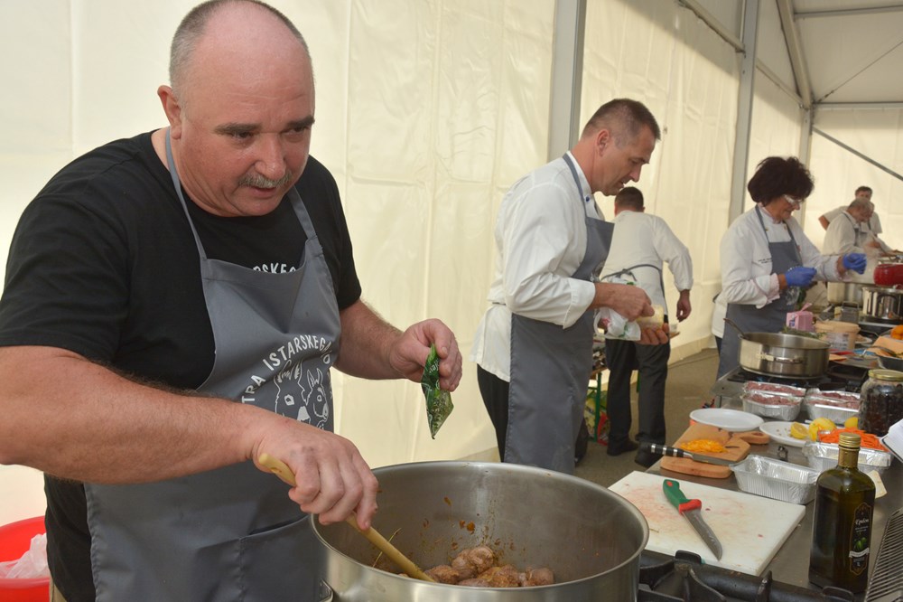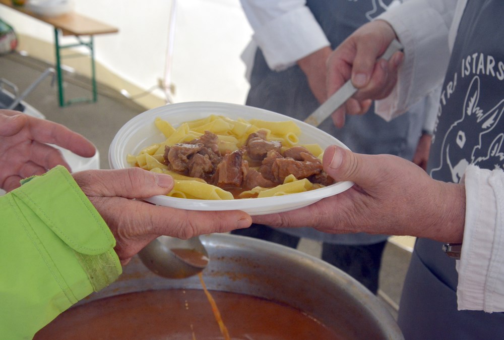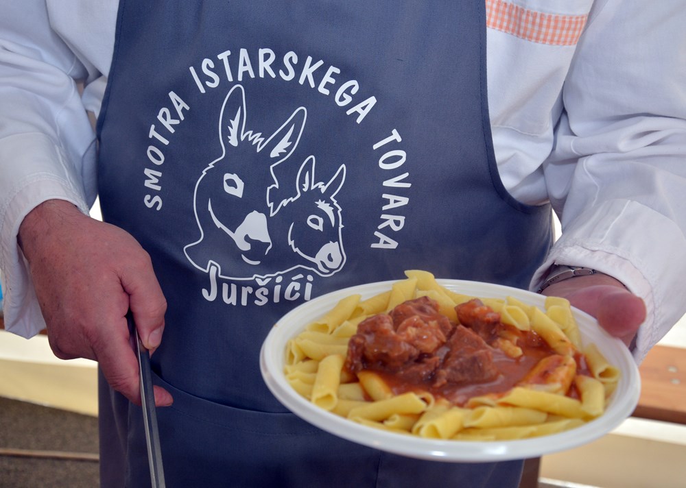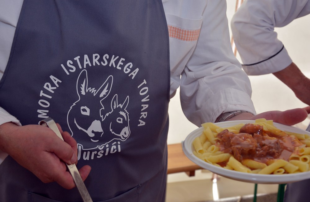 U šatoru se odvijao gastro-kutak. Na meniju je bio - magarac. Fuži i njoki sa šugom od magarca, palenta ili kupus sa boškarinom na jednom štandu. Na drugom je Tomaž Vozelj uz Domžale pripremao gourmet s magarećim mesom s umakom od kadulje, naranče, mrke i celera. Čak je i desert bio od magarca. Poznata istarska slastičarka Dragica Lukin od magarećeg mlijeka napravila je božanstveno kremu od vanilije koje je potom pomiješala s domaćim džemom od šljive čime je prelila fritule. Za svaku pohvalu - jelima i manifestaciji. (Lara BAGAR, snimio Neven LAZAREVIĆ)