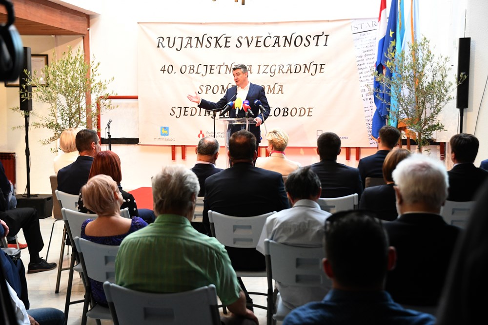 "Narod bez države je tanak glas u noći. Država bez vojske jednako tako. Prije skoro 80 godina Istra je odlučila da želi biti dio Hrvatske i sjediniti se s maticom. Nakon kapitulacije Italije, u rujnu 1943. godine, bila je to "zvonka desiderata", nešto što se želi, ali do čega je dalek put, no nekoliko godina kasnije se i ostvarilo", kazao je predsjednik Republike Hrvatske Zoran Milanović večeras u Pazinu na središnjoj proslavi obilježavanja Rujanskih odluka i 40. obljetnice izgradnje Spomen doma sjedinjenja i slobode.