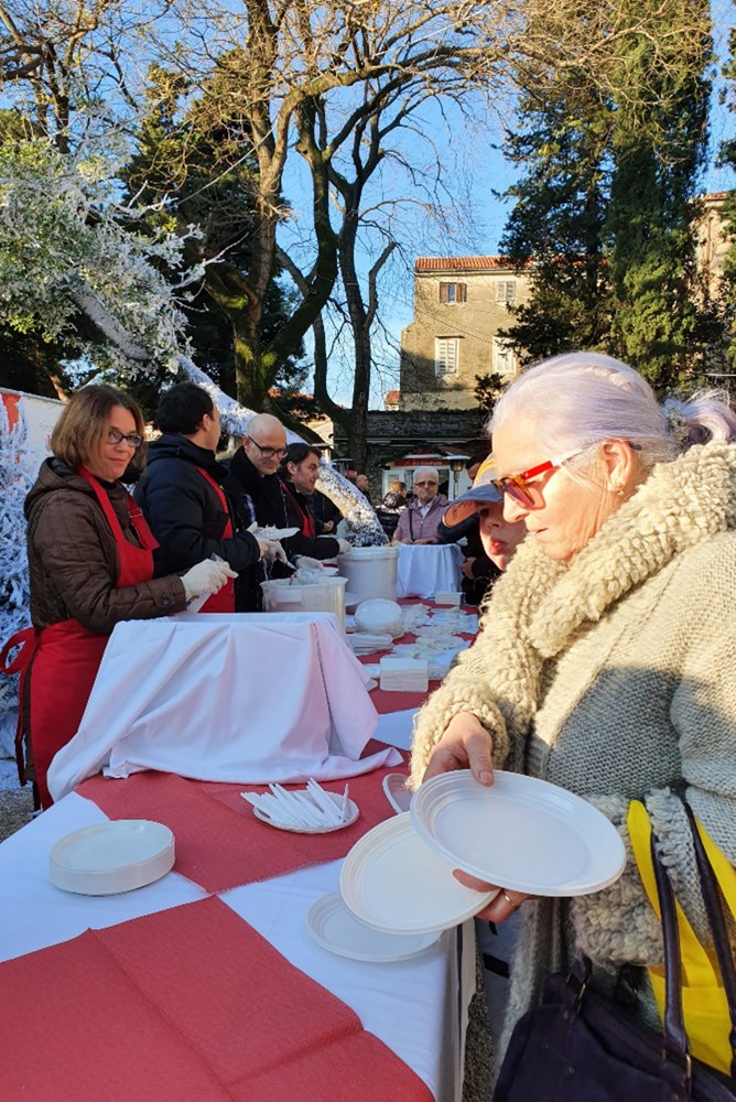Na nekoliko štandova na Trgu Matije Gupca besplatan bakalar i vino za sve okupljene dijelili su gradonačelnik Loris Peršurić sa zamjenicima Nadijom Štifanić Dobrilović, Sanjom Oplanić i Elijom Štifanićem, a sedmu godinu zaredom ovo je druženje povodom božićnih i novogodišnjih blagdana okupilo do sad najveći broj Porečanki, Porečana i gostiju dosad. Ukupno je podijeljeno tisuću porcija bakalara i vina, a brojni su se gosti na marendi družili sve do popodnevnih sati.