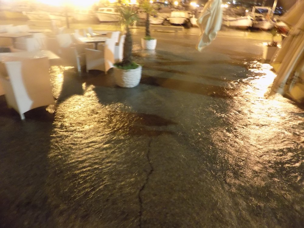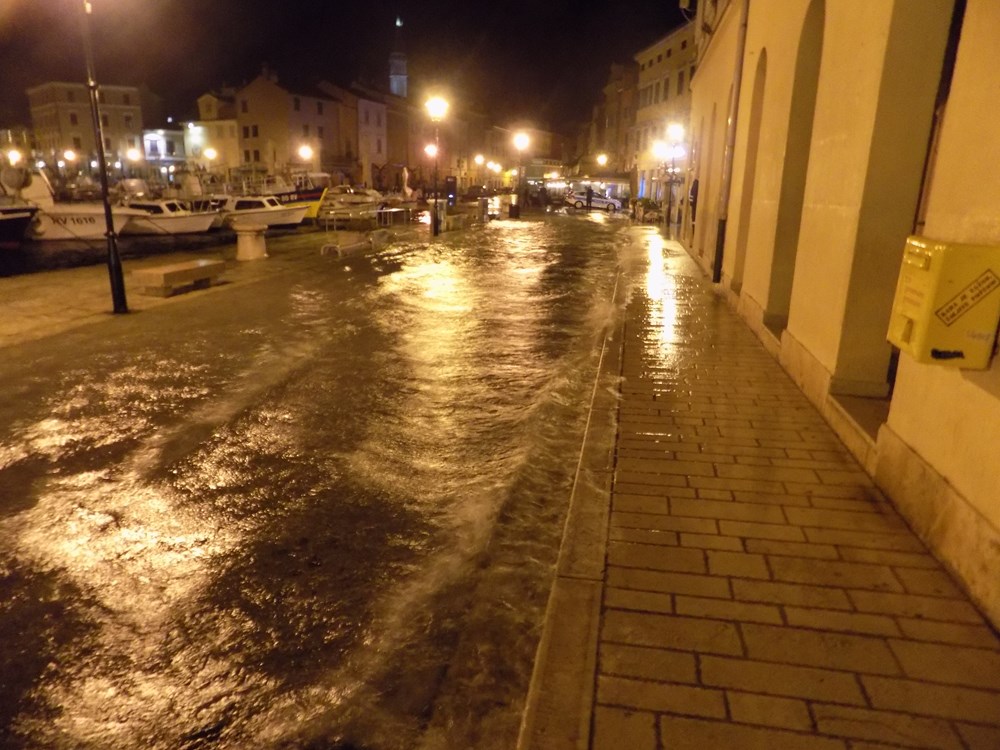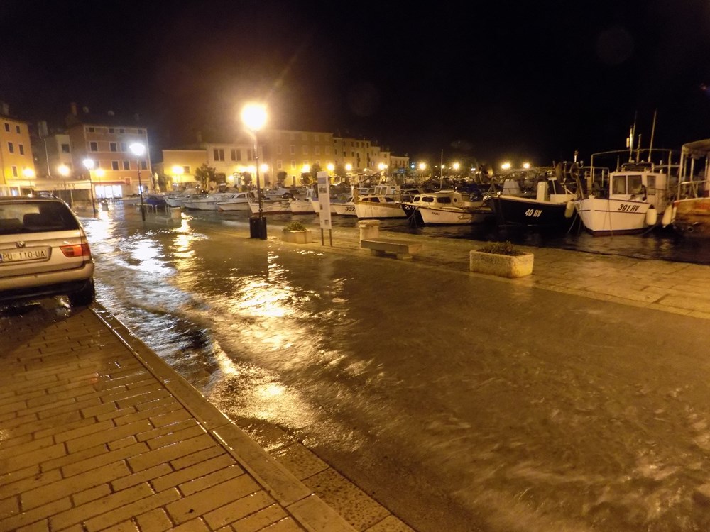U utorak nešto iza 19 sati na rovinjskoj rivi, iz minute u minutu more se dizalo da bi sat vremena kasnije na nekim dijelovima dosegnulo i visinu od 30-ak centimetra iznad obale, stvarajući na rovinjskoj rivi velike (pa i duboke) neprohodne bazene.