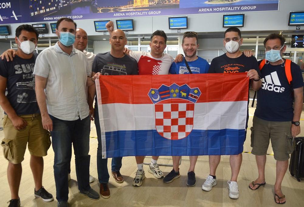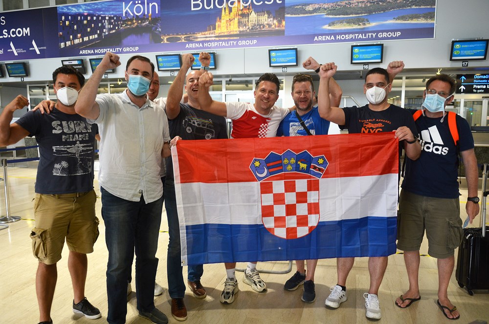 Uzbuđenje je veliko, više desetaka navijača na let je došao upravo u majicama crveno bijelih kockica, a nisu zaboravili ponijeti ni zastavu, navijačke kape i zviždaljke.