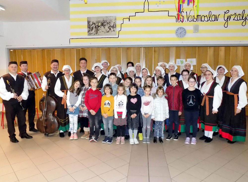 Susret roditelja, osnovaca i folkloraša u holu buzetske škole zamišljen je kao spoj glazbe, plesa i očuvanja nematerijalne baštine. Uz svirku mužikanti i nastup kantadurki, osnovci su zaplesali šete paši i rašpu, a potom su nastupili i folkoraši GD "Sokola". Obilježen je ujedno i Međunarodni dan materinskoga jezika koji je posvećen svim jezicima svijeta jer svaki je jezik onome tko ga govori materinski, poručila je školska knjižničarka Mirjana Krbavčić.