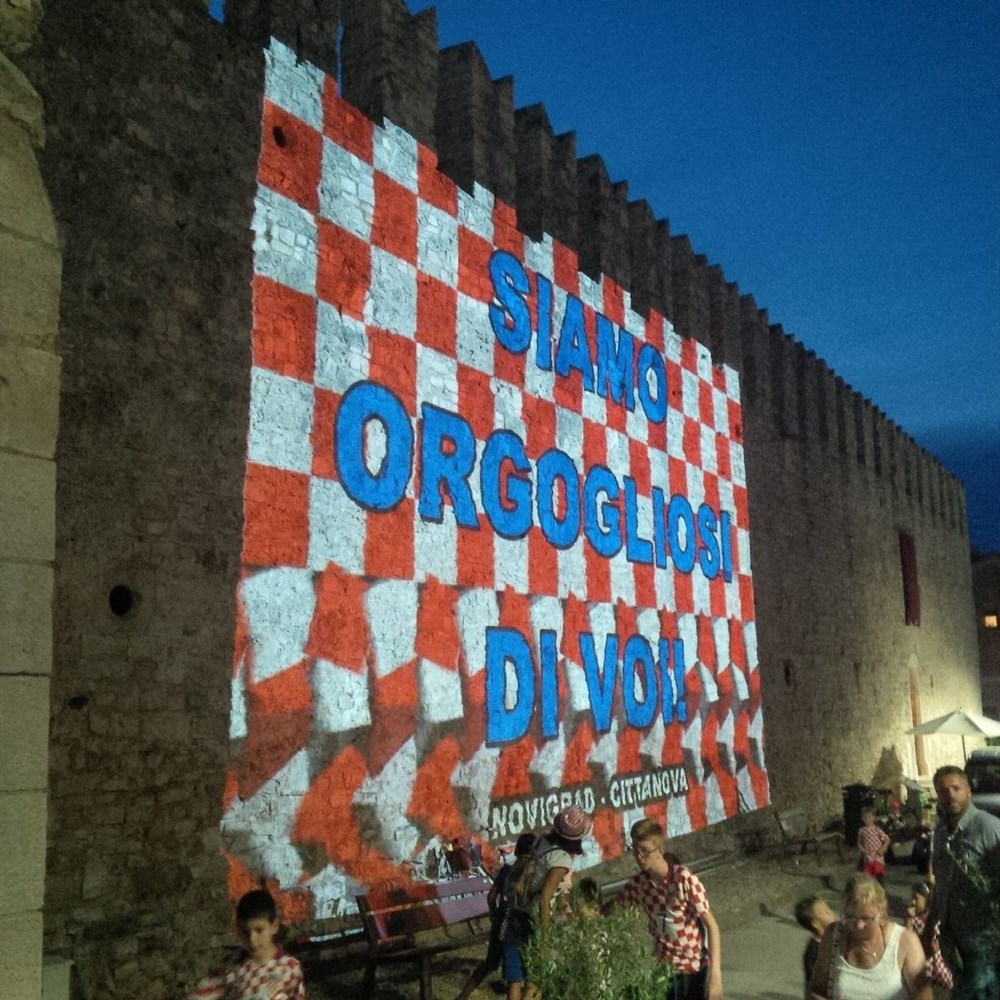 Iako su navijači diljem Lijepe naše prijenos utakmice i nes(p)retan poraz pratili dostojanstveno, svi oni koji su se u nedjelju navečer, s prvim mrakom zatekli u blizini novigradskih povijesnih gradskih zidina u Prolazu Venecija ili uz gradski zvonik na Velikom trgu, mogli su se uvjeriti kako je Novigrad podršku izabranicima Zlatka Dalića iskazao na jedan originalan i efektan način – atraktivnim animiranim video projekcijama na ova dva prepoznatljiva novigradska kulturno-povijesna spomenika. Putem animiranih projekcija na zidine i zvonik, uz neizbježne crveno-bijele kvadratiće, Vatrenima su na tri jezika – hrvatskom, talijanskom i engleskom upućene poruke podrške i čestitke za ovaj povijesni sportski uspjeh.