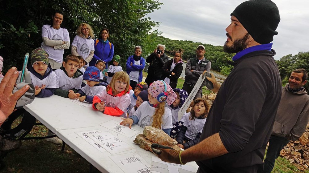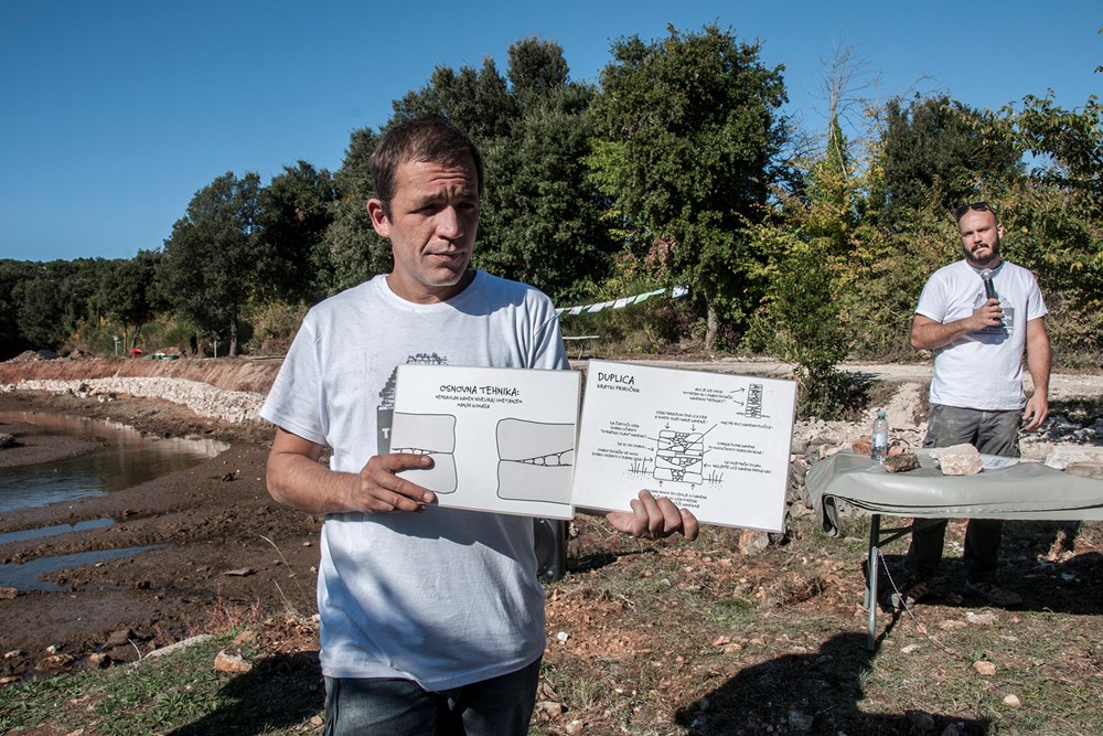 Vrsni majstori suhograditelji prezentirali su roditeljima, mještanima, volonterima najčešće pogreške u gradnji suhozida te objasnili temeljna pravila i tehnike suhozidne gradnje na konkretnom primjeru obnovljenog suhozida.