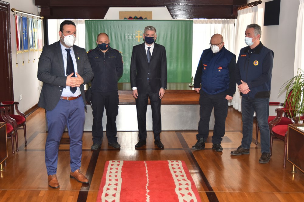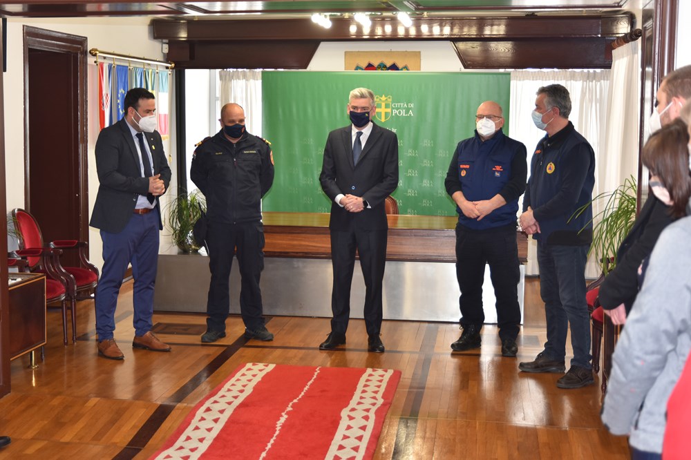 Gradonačelnik Pule Filip Zoričić i istarski župan Boris Miletić danas, 1. ožujka 2022. godine u pulskoj Komunalnoj palači održali su tradicionalan prijem za predstavnike Stožera civilne zaštite Grada Pule i Istarske županije kojim je obilježen Međunarodni dan civilne zaštite.