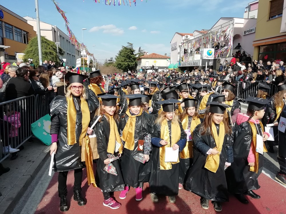 Glavnom labinskom ulicom Zelenice koja je zbog maškara u subotu većim dijelom dana bila zatvorena za promet prošlo je 18 maškaranih grupa iz dječjih vrtića i osnovnih škola Labinštine. U dječjoj reduti koju je organizirala udruga Labinjonska kompanija-domoća fošarija uz potporu Grada Labina, Turističke zajednice Labin i mnogobrojnih sponzora prošlo je oko 650 djece u slikovitim i šarenim skupinama Vitamini iz Dječjeg vrtića Kockica Kršan, Diplomci iz OŠ I.L.Ribar Labin, čak 14 skupin iz Dječjeg vrtića Pjerina Verbanac Labin i to Afričke životinje, Dinosauri, Trolovi, Čarobnjaci, Talijanska nogometna reprezentacija, Navijači Hrvatske reprezentacije, Crnci, Puževi, Grožđe, Zvjezdice, Srca, Pekari i Ronioci a iz OŠ Matija Vlačić Labin u povorci su sudjelovali Motetovi mušketiri dok je Područna škola iz Rapca predstavila 100 milja Istre.
