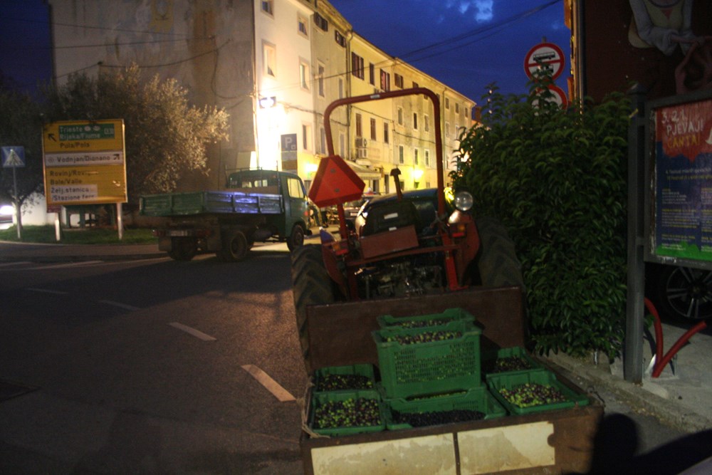 U listopadu i studenom treba uvijek računati na gužvu pred starom uljarom, najstarijom u Istri, koja neprekidno radi od 1911. godine. Duboko je ukorijenjena ta tradicija da se ovdje dovozi urod, tu na kraju Trgovačke, ako se gleda od centra grada, zbraja se godina i već promišlja sljedeća sezona. Kolona vozila uz trotoar u ponedjeljak predvečer se protezala od kraja Trgovačke preko Trga javne vage prema raskrižju sa Željezničkom. Za vikend je, čujemo od okupljenih, kolona bila i duža, a strpljenje kod mnogih puno kraće. Masline se rade samo jednom godišnje, prava sreća da nema dvije ljetine.