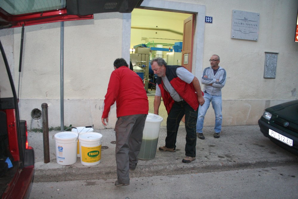 - Ma to je jedna prosječna godina. A čuj, bilo je i slabijih i boljih. Ovo je, da budem iskren, zadovoljavajuće, kaže Smoljan. U vodnjansku uljaru ulike se dovoze iz svih krajeva Istre, pa i šire. Tako se i u razgovor uključuje jedan Marčanac, koji na predaju ulika čeka od 13.30 sati. Da nije skroman čovjek nezadovoljstvo bi mu trebalo biti i dvostruko jer kaže da su mu masline podbacile već u proljeće.