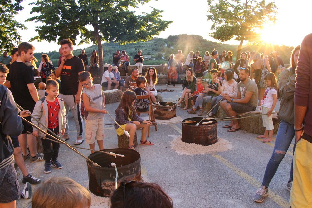 Oprtaljski trg kod lođe već u predvečerje bio je lijepo popunjen posjetiteljima. Djeca su na otvorenoj vatri pekla kruščiće na štapu, nudila se juha od kopriva, fritule s đumbirom, ljuti "vatreni" proizvodi, u lođi su se na nekoliko štandova nudili razni domaći proizvodi… Oživljen je i zaboravljeni ples "na tavolac", na daščanom podu kao nekada, gdje su mnogi pokušavali naučiti stare istarske plesove uz stručno vodstvo Koviljke Marečić i Branimira Šajine, a svirao je Dario Marušić s prijateljima iz grupe Veja koja je na kraju programa imala završni koncert.