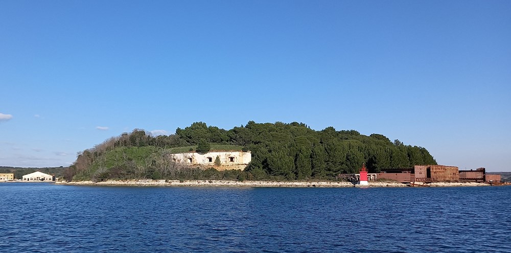 Britanski pomorski peljar "The Adriatic Pilot" iz 1861. o ulasku u pulsku luku piše: "Oko jednu i pol milju nakon ulaska nailazimo na tri mala otočića: Sv. Katarina, Sv. Andrija, velik, razmjerno uzvišen s topničkom baterijom i nekim ruševinama, te otočić Sv. Petar. Postoji samo jedan prolaz do luke za velike brodove, i to između otočiča Sv. Andrija i Sv. Petar".