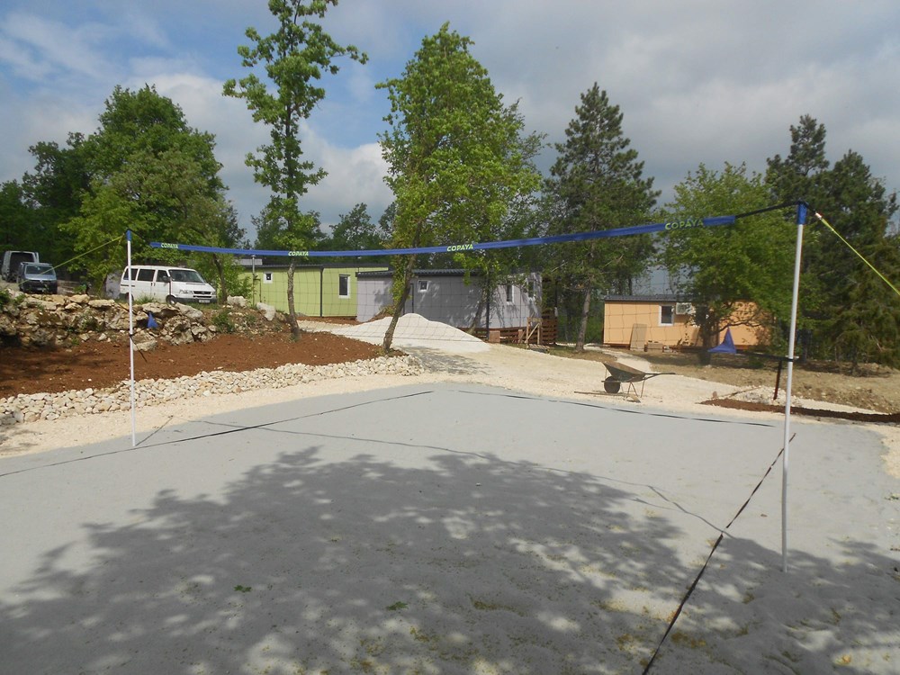 Nedaleko sanitarija je bazen, a malo niže, budući da je kamp na padini, uređeno je igralište za odbojku na pijesku i badminton. U sjeni krošnji hrastova kojih ima po cijelom kampu, u istočnom dijelu uređene su parcele za kamp-prikolice i auto-domove, a u nastavku parcele za postavljanje šatora. Kamp je koncipiran tako da se potpuno uklapa u prirodu i okoliš, zadovoljava sve ekološke standarde, odnosno maksimalno je prilagođen zatečenom prirodnom ambijentu. Koliko je to bilo moguće, minimalno je intervenirano u okoliš da se ne bi umanjio doživljaj boravka u prirodi. Naime, upravo je priroda središnje Istre to što je Peričeka potaknulo, ili bolje rečeno, izazvalo da se odluči na uređenje, više nego na gradnju kampa u središnjoj Istri.