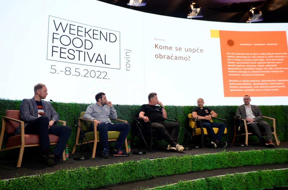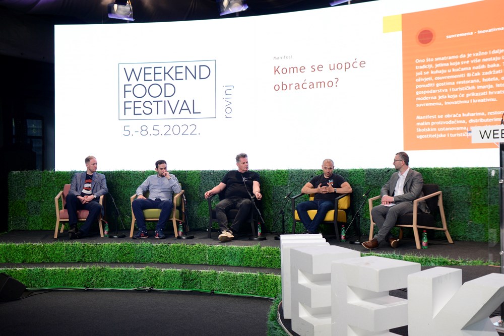 Njistaknutiji chefovi hrvatske gastro scene – Hrvoje Kroflin, Tvrtko Šakota, Deni Srdoč i poznati paški ugostitelj Boris Šuljić, zajedno s moderatorom Hrvojem Petrićem, direktorom programa Weekend Food Festivala, definirali su ključne točke i smjerove razvoja moderne hrvatske kuhinje da bi ona bila ponosno predstavljena stranim i domaćim gostima i medijima.