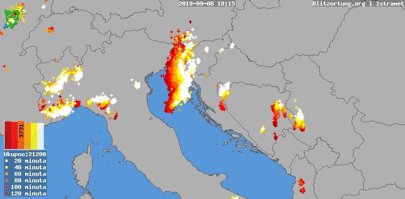 Oko 16 sati na moru zapadno od Istre, kako piše Istramet, došlo je do razvoja izražene frontalne naoblake uz veliku grmljavinsku aktivnost. Fronta se zatim u iduća dva sata premjestila preko zapadne i južne Istre donijevši više od 15.000 udara munja u samo dva sata.