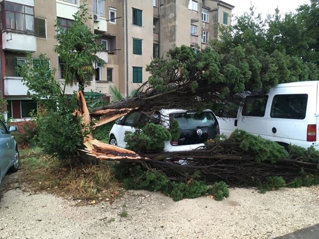 U sklopu razvoja snažne grmljavinske linije, u Rovinju se vrlo vjerojatno razvila pijavica koja je rušila stabla.