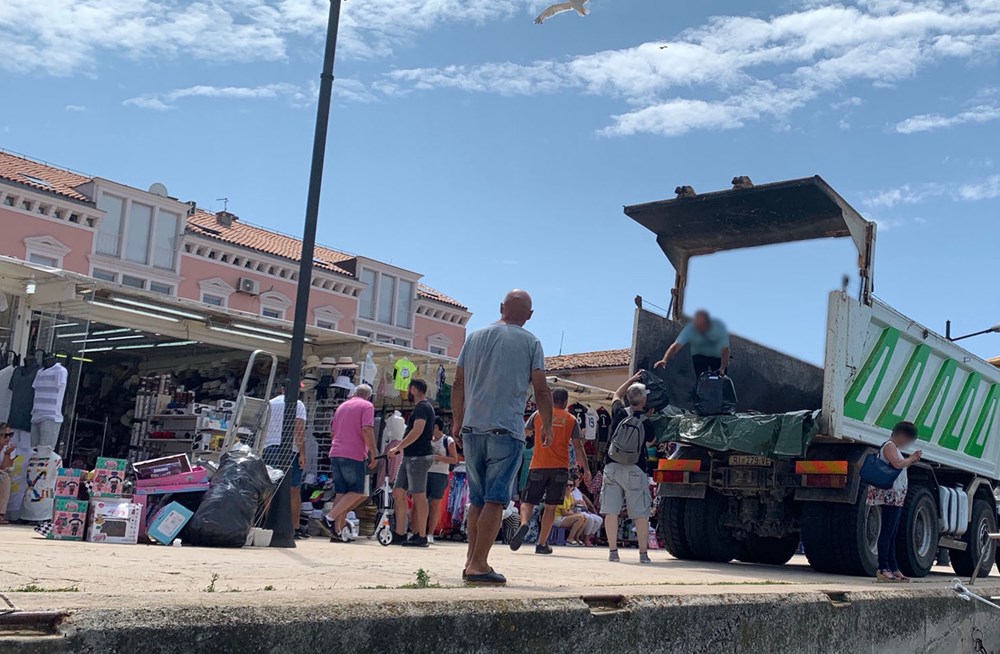 Riječ je o krivotvorenoj odjeći, obući, tehnologiji i igračkama, a u prisutnosti znatiželjnih gostiju i građana Umaga roba je ukrcavana na kamion, dok su utučeni štanderi gledali kako asortiman s njihovih štandova i trgovina nestaje u vozilu carine.
