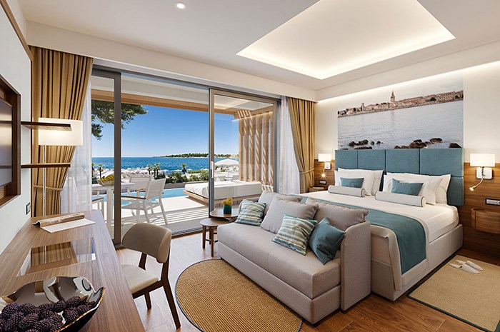 Valamar Collection Marea Suites nudit će smještaj u raznim tipovima luksuznih obiteljskih suitova (junior, superior, premium, swim up i garden). Jedan od najatraktivnijih su zasigurno Swim up suiteovi s direktnim prilazom Swim up bazenu. Swim up sobe su trend u svijetu koje Valamar već ima u svojoj destinaciji Rabac, a riječ je o direktnom pristupu bazenu s terase smještajne jedinice. Swim up je trenutno vrlo cijenjen i tražen resort proizvod.