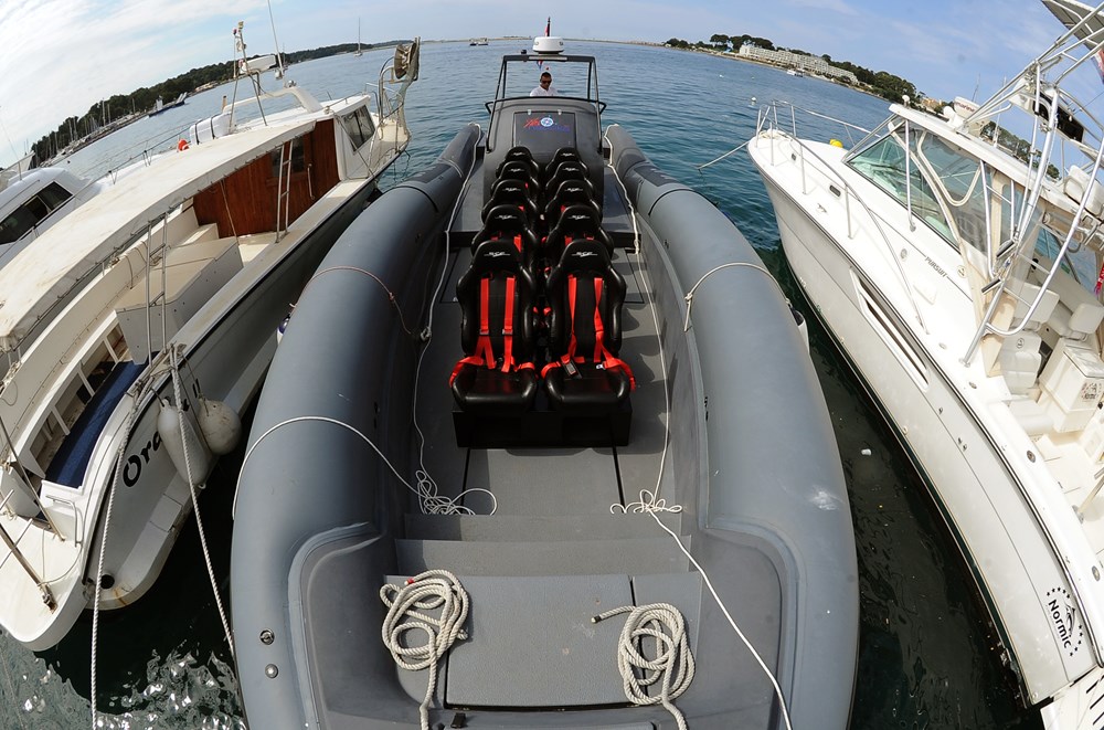 Riječ je o plovilu koje izgleda poput kakvog glisera napravljenih u radionici Q-a iz serijala filmova o Jamesu Bondu. Veliki gumenjak, koji je izgrađen u Galižani, a dovršen u Puli, pogone tri motora po 250 konjskih snaga, ostvaruje nevjerojatnu brzinu od 70 čvorova. Od Brijuna do Poreča doplovi za samo 15 minuta, a od Splita do Pule mu je potrebno oko dva i pol sata
