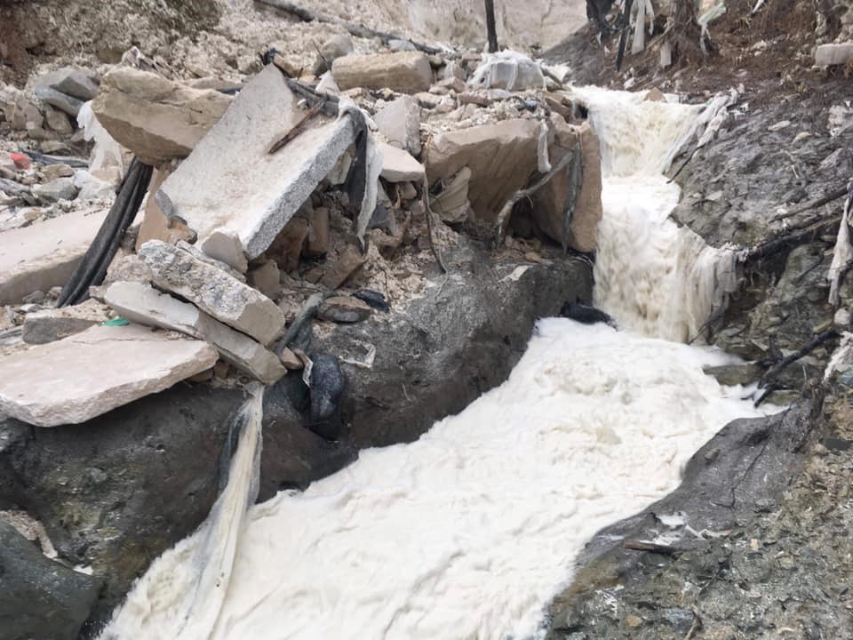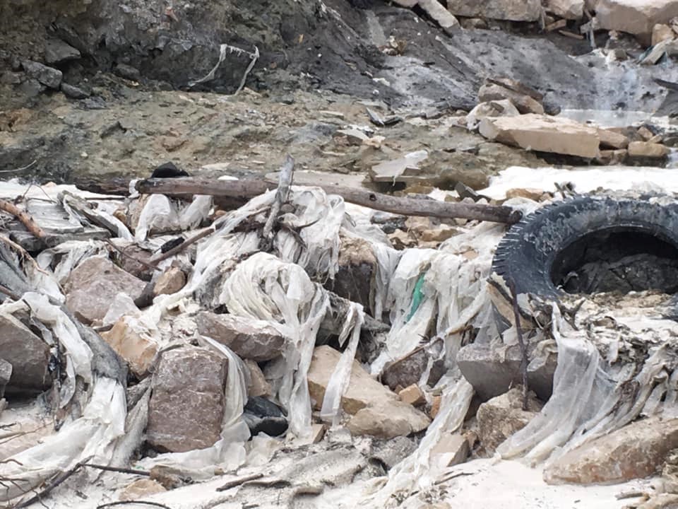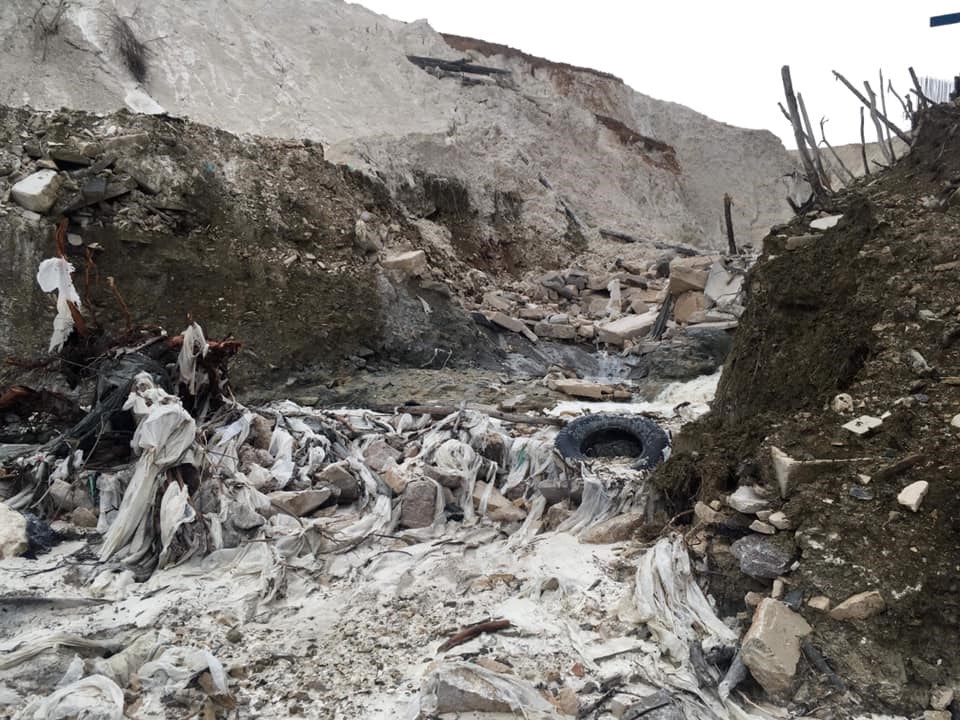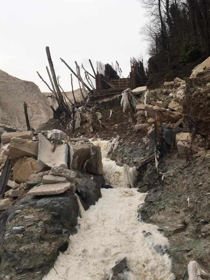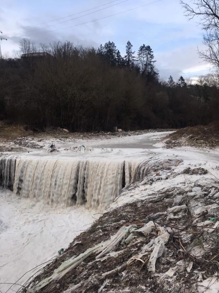 Očito je da vodeni val nije uspješno kanaliziran kroz novo korito, već je dobrim dijelom prešao i preko platoa deponija, a voda je prodrla i unutar deponija Lakota, o čemu svjedoče novonastale manje rupe u samom deponiju iz kojih istječe bijela voda.