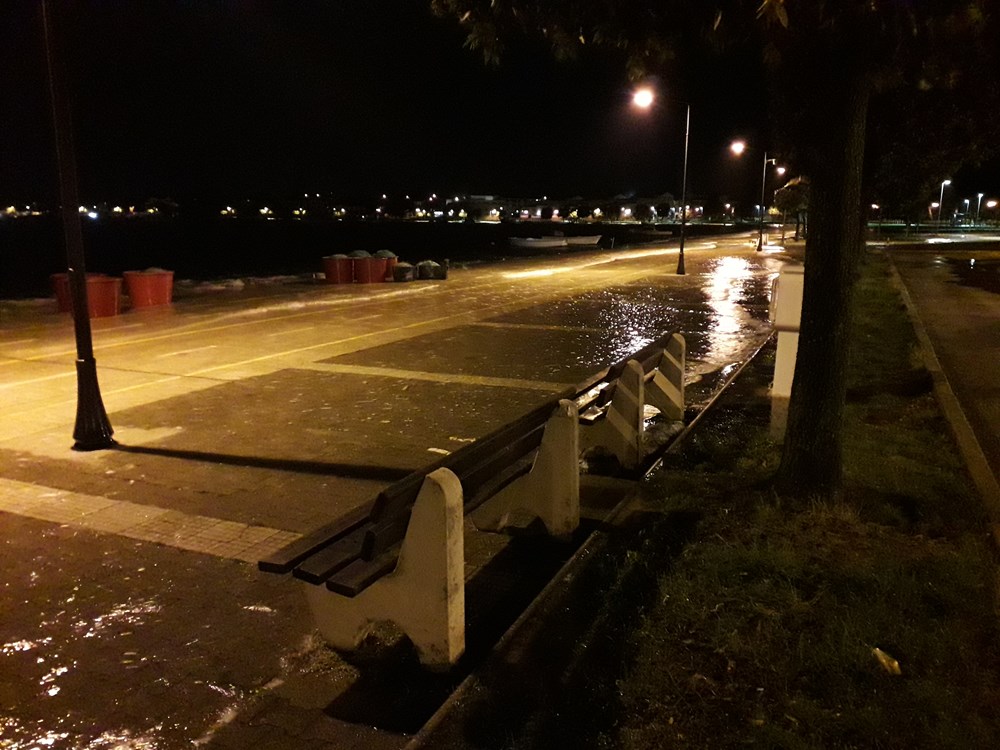 S južne strane umaškog starogradskog poluotoka, na obali Sv. Pelegrina nestalo je rasvjete pa su se mogli tek nazrijeti visoki, pjenasti i bučni valovi koji su poplavljali strogradsku jezgru. Uz ažurne