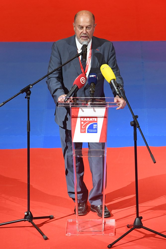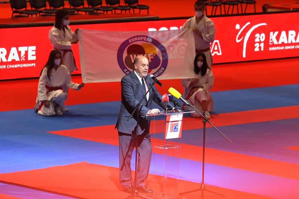 Nakon predstavljanja zemalja sudionica Europskog prvenstva na svečanom otvaranju govorili su predsjednik Hrvatskog karate saveza Davor Cipek, gradonačelnik Poreča Loris Peršurić, državni tajnik u Ministarstvu turizma i sporta Tomislav Družak i predsjednik Svjetske i Europske karate federacije Antonio Espinosa.