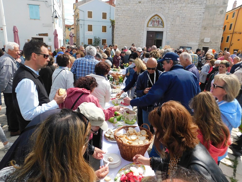 Koliko god toga da se spremi za uskrsnu marendu u Fažani, sve s blagdanske trpeze na Trgu sv. Kuzme i Damjana brzo se pojede. Tako je bilo i na uskrsni ponedjeljak, na tradicionalnu marendu u organizaciji Turističke zajednice Fažane i Župe, koju je nakon jutarnje mise blagoslovio župnik Ilija Jakovljević.