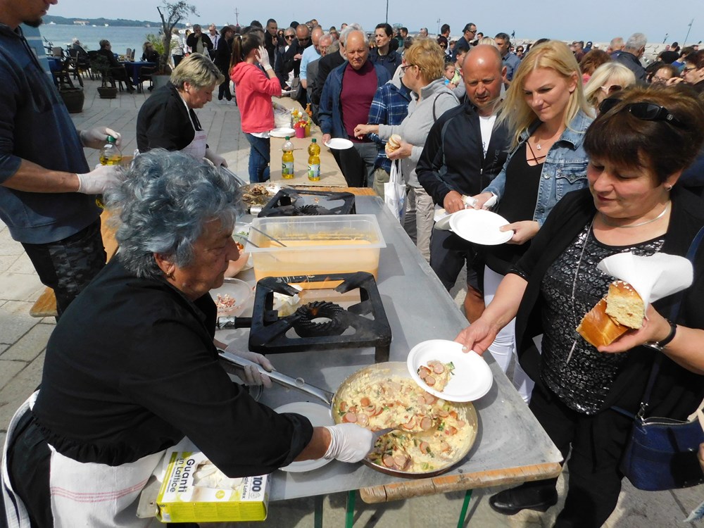 Velika pinca, desetmetarska poslastica koju već godinama sprema Nelo iz Galižane, brzo je razgrabljena, a fritaja s kobasicama, mladom kapulom i pancetom, koju su spravljale Fažanke Luciana Debeljuh i Emilia Černac, nije se stigla toliko brzo frigati, koliko su brojni gosti željeli.