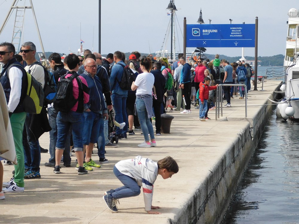 Naravno, brojni su gosti zapravo izletnici koji su lijepo vrijeme odlučili provesti u Nacionalnom parku Brijuni, o čemu je svjedočila stalna gužva na brionskom molu. I prije nego su se ukrcali na brod valjalo im je nešto prigristi na rivi - pincu, fritaju, kuhanu šunku, jaja, bakalar, rotkvice, mladu kapulu i druge blagdanska jela koja su spremali ugostiteljski objekti Stara konoba, MUP-a Valbandon i Vasianum. Za popodnevne je sate TZ pripremio radionicu pince i povetice, koju su vodile fažanske penzionerke, Sindikat umirovljenika vodio je kreativnu radionicu na temu Uskrsa, a djeca su mogla zaigrati stare igre kao što su guranje jaja u gnijezdo, pinjate i potraga za uskrsnim jajem u masliniku. Boćarski klub Fažana organizirao je turnir u pičenju jaja, a na rivi su se djeca mogla poigrati i s pravim zečićima i kokicama.