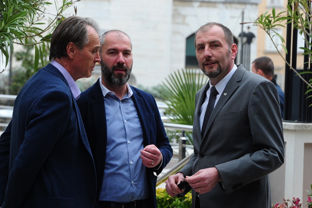 Okružen nečelnikom Ližnjana Markom Ravnićem i Elenom Puh Belci predsjednik IDS-a Dalibor Paus upravo je dao kratku izjavu sa Sabora te stranke, koja je nedavno doživjela velike turbulencije nakon što je iz nje izašao dugogodišnji lider Boris Miletić, protiv kojeg je prethodno pokrenut disciplinski postupak.