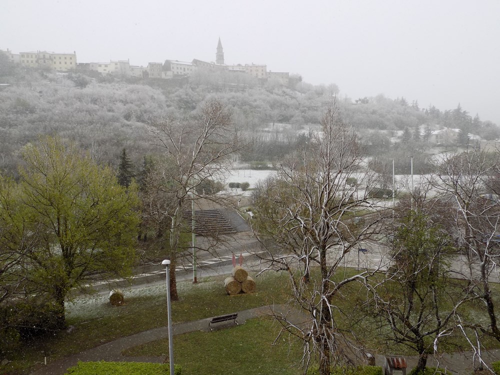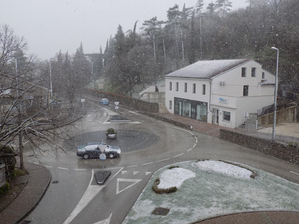 Proljetni snježni val zabijelio je Ćićariju i više predjele Buzeštine, a gusti snijeg pada i u buzetskoj kotlini gdje se također počeo zadržavati na tlu.