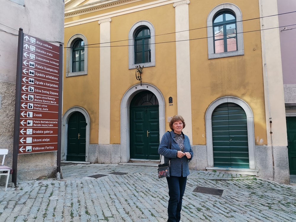 S vodičkinjom Marijom Golja iz Rapca razgovaramo u šetnji starogradskom jezgrom i prolazimo kroz glavna vrata iznad kojih je uklesan labinski grb i mletački lav te kratkim usponom dolazimo na Mali trg, koji je prije tri stoljeća bio glavni trg Labina.