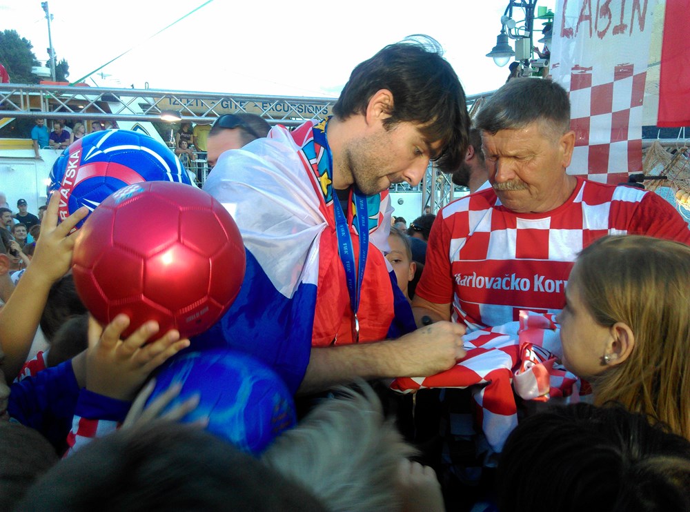 Stotinjak nogometnih lopti koje je potpisao podijeljeno je mališanima u publici. Predsjedniku NK Rabac Marku Bateliću poklonio je nogometni dres reprezentacije kojeg su potpisali svi igrači, a Batelić mu je zauzvrat poklonio dres NK Rapca s njegovim imenom. Anton Gregorić, najstariji Rapčanin koji je ušao u 99. godinu poklonio je Ćorluki karikaturu autora Maria Viškovića. Organizatori dočeka bili su Grad Labin i NK Rabac. Program se nastavio do kasno u noć. (Branko BIOČIĆ)