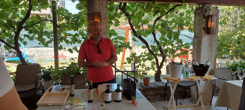 Već je prvo takvo u nizu iznenađenja uslijedilo odmah po kušanju ulja zakrcavanjem stolova u konobi slasnim istarskim zalogajčićima, brusketama Mediteran, bakalarom in bianco (na bijelo), istarskom pancetom, pršutom, raznim sirevima, carpacciom od boškarina, hladnim ribljim predjelom i istarskim fritulama. Pod krovom konobe protegnuo se spontani aplauz. Uz sve to kušala se čuvena malvazija CUJ, etabliranog umaškog vinara Danijela Kraljevića. Svježa i barrique iz 2018., a voditelj podruma znalački ih je uvodio u svijet razlikovnih okusa ovih dviju malvazija.