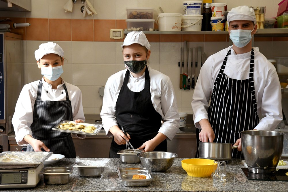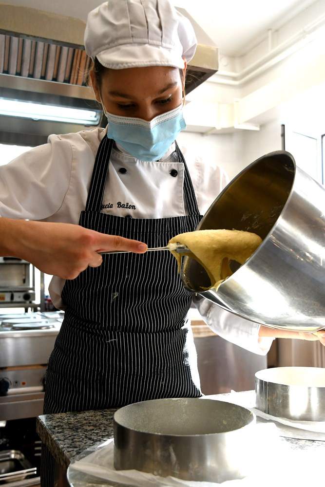 Aurora Carraro, Tamara Mišković, Lucija Bažon, Stefano Peruško, učenici drugog razreda smjera Slastičarstvo, te Adrian Qenaj i Vanessa Đelčić iz trećeg razreda pokazali su nam u školskom praktikumu na Stoji u protekla dva dana svoje znanje i vještine. Mentor u ovom predstavljanju bio je stručni učitelj slastičarstva i kuharstva Robert Perić.