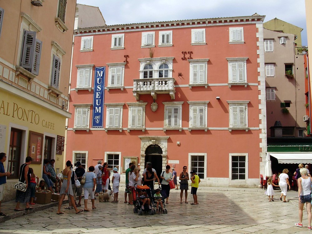 Muzej grada Rovinja smješten je u nekoliko zgrada na jednoj od živopisnijih lokacija Rovinja. Najupečatljivije su palača Califfi s kraja 17. stoljeća (u narodu zvana Crvena zgrada), s raskošnim pročeljem, kamenim portalom i grbom obitelji, jedna je od najkvalitetnijih baroknih zdanja u Istri i na istočnoj obali Jadrana. Muzej koristi i dio Žute zgrade, među narodom najpoznatije kao sjedište nekadašnjeg Komiteta. Ta je impozantna zgrada izgrađena 1680. godine kao gradska žitnica (fontik). Potom je služila kao zalagaonica (Monte di pietà), da bi današnji izgled dobila 1869. godine kada je dograđena za sjedište okružnog suda. Radi se o zgradama koje su građene uz gradske zidine i nalazile su se na obali nekadašnjeg otoka do 1763. godine, kada je kanal zatrpan i otok spojen s kopnom.